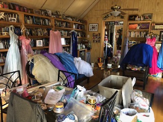 Dottie’s living room of 24 dresses and bows
