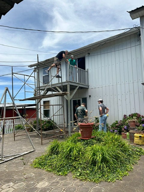 This is the largest team since Covid. There are 35 on the team. They will be installing windows and building a deck.